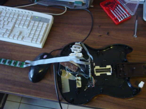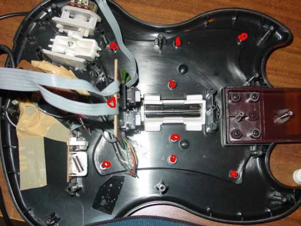 Ahora, buscar en el controlador... se puede ver un esquema de la guardia de la selección. Debe haber 9 tornillos. Aflojar todos los. Entonces el protector pick debe salir.