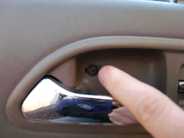 Retire la manija. Hay un tornillo que sostiene la manija a la puerta. Retire el tornillo y deslice suavemente el mango hacia la derecha (o izquierda dependiendo el coche)