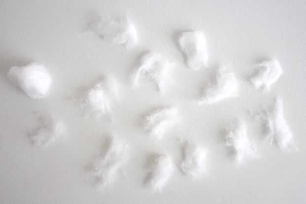 La tira de rasgón en trozos más pequeños - usted puede conseguir algunos de una bola! Realmente desea piezas grandes lo suficiente para que usted puede cubrir la uña entera.