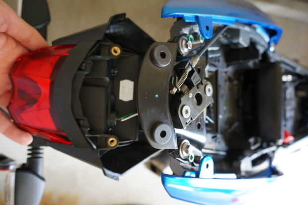 Cómo quitar la luz de la cola de 2013 Triumph Street Triple e instalar VIZIO-Tec II SB u otros accesorios (4 / 9 paso)