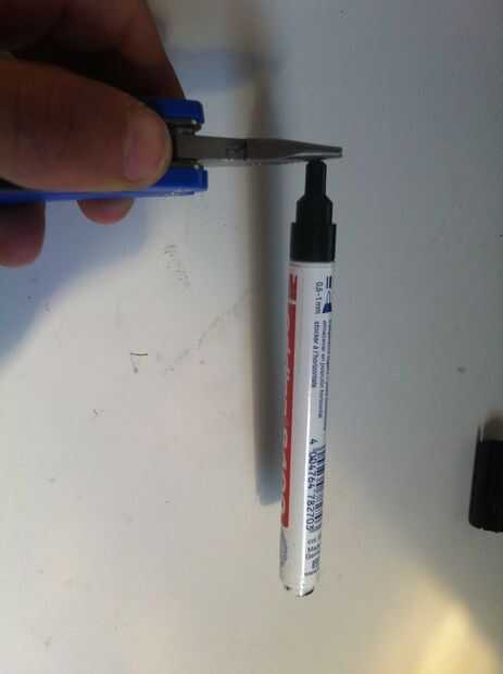 Utilice alicates de punta para exprimir toda la tinta en la punta de la vacía Edding 8400.