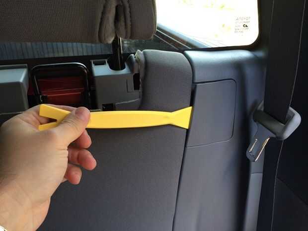 Todo el panel trasero sale como una pieza grande, pero primero que tiene que quitar la placa y anclaje en las 3 primeras fotos. Usando la herramienta para guarnecidos plástica es un pedazo de pastel. Asegúrese de que los dos anclajes negro nuevo en su sitio en el panel de la cinta cuando se saca para no perderlos. Poco a poco vaya a lo largo de los lados del panel como se muestra. Podrás sentir los lugares aproximados donde los anclajes son y un suave tirón debe desabrochar fácilmente les.