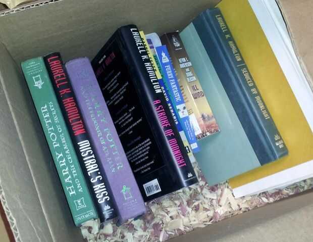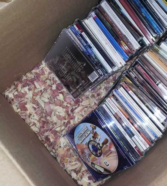 Dicho todo esto, lo hice más de 400 libros, 200 DVDs y CDs de alrededor de 150, girando dentro y fuera de 4 cajas con la capa de virutas, en aproximadamente 9 días.