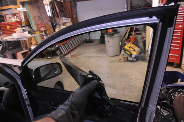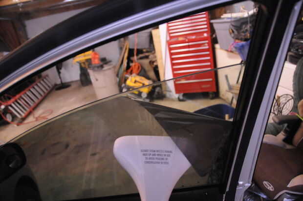 Ahora Tire lentamente en esa esquina mientras trabaja el vapor por debajo de la tinta para crear una pequeña campana de vapor. Trate de no dejar que el tinte a volver a la ventana porque se pegará otra vez, entonces usted tiene que tomar de nuevo. Continuar todo esto en la parte superior de la ventana, y trabajar hacia abajo. Al llegar a la parte inferior, enrollar la ventana y terminar para arriba.