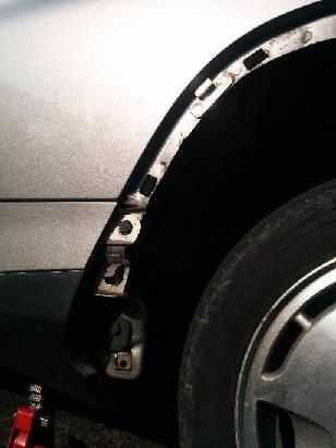 En la parte trasera muy, quitar la rueda trasera guanteras y quitar los sujetadores plásticos adicionales detrás de él el umbral de conexión. Son diferentes de los demás, recuerda esto cuando reinstale