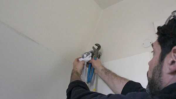 Coloque un trapo sobre ella. Utilice sus cerraduras del canal para aflojar el brazo de ducha. Esto evita que las cerraduras del canal rayar el acabado de la cabeza de ducha.