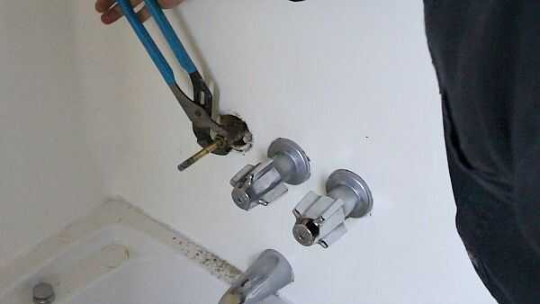 Retire los tallos de las tuberías de la ducha girando hacia la izquierda.