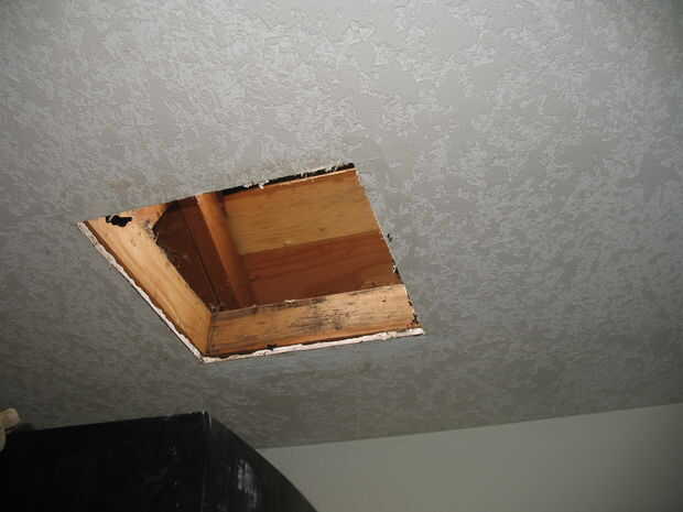 * Usando un mallot o un pedazo pequeño de madera con un martillo, golpear en la chimenea de interior para liberar de su porción inferior conectado.