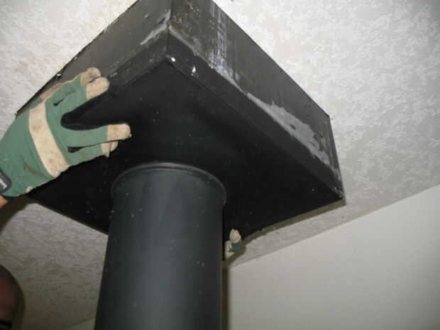 * sacar hacia fuera la parte superior de la chimenea de interior del techo.