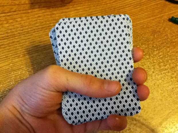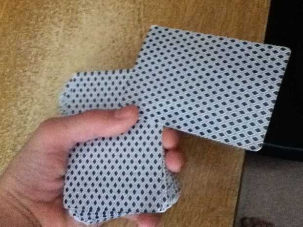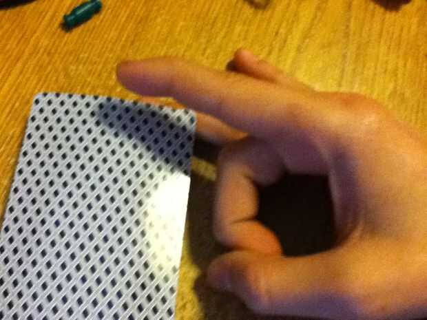 Foto 2. Colocar la primera carta en esta posición. Manténgalo ahí con el dedo pulgar.