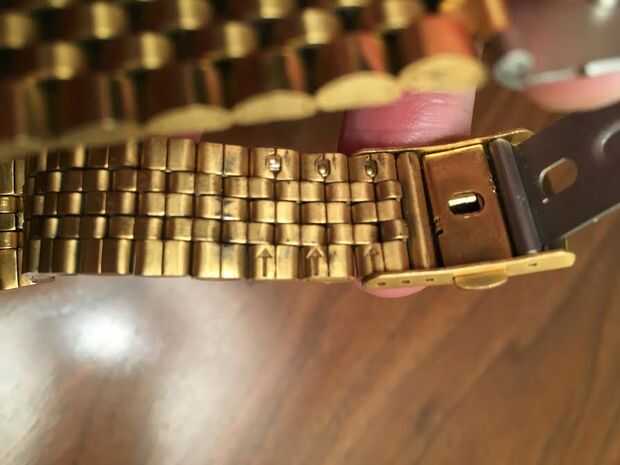 Para quitar un enlace en su venda de reloj, primero debe localizar dónde retirar el enlace y cuántos links le quieren quitar. Enlaces particular en su reloj tendrá flechas indicando que puede ser quitados. Pequeños pasadores desmontables Hilvanar cada uno de estos enlaces.