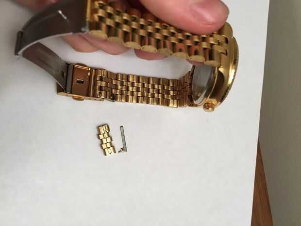 Nota: si el pasador está suelto, que tenga a alicate para abrazadera en la banda y el pin, asegúrese de envolver paño alrededor de los alicates para que no abollar o arañar el acabado de su reloj.