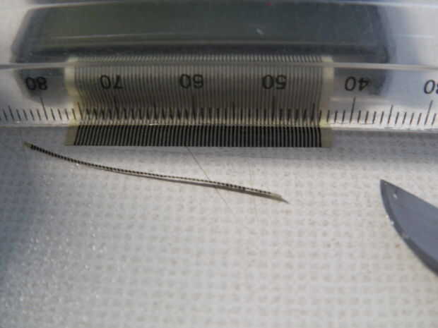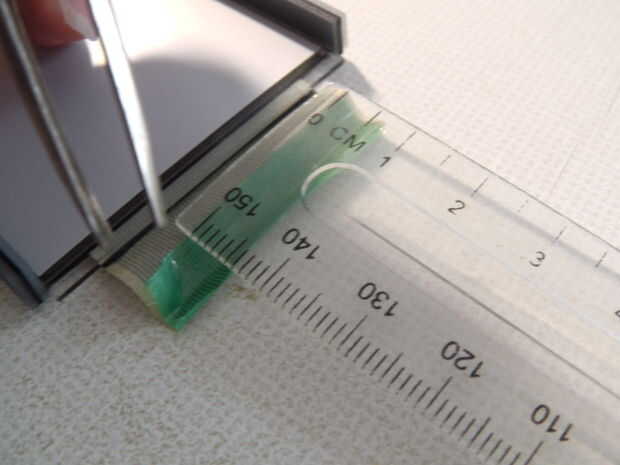 Encontré que era mejor utilizar una regla plástica para ver a través de la cinta por lo pude ver cuánto debo cortar.