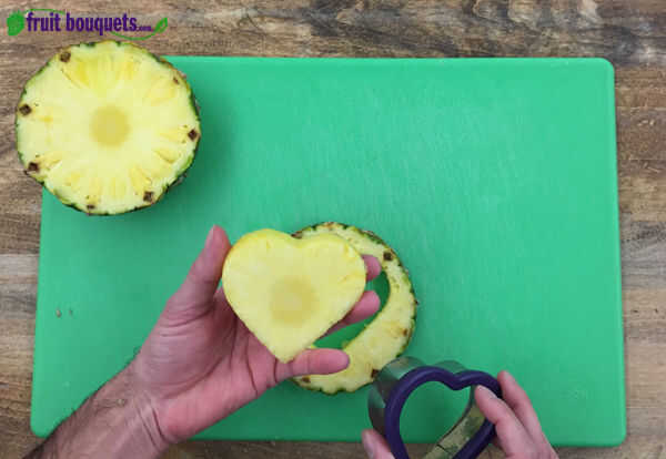 • Usando el cortador de galleta en forma de corazón, presione firmemente hacia abajo el cortador de galletas en la piña.