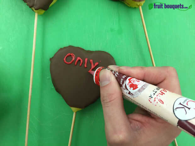 • Una vez que el chocolate esté seco, utilice un escritor helar para escribir mensajes para su otro significativo.