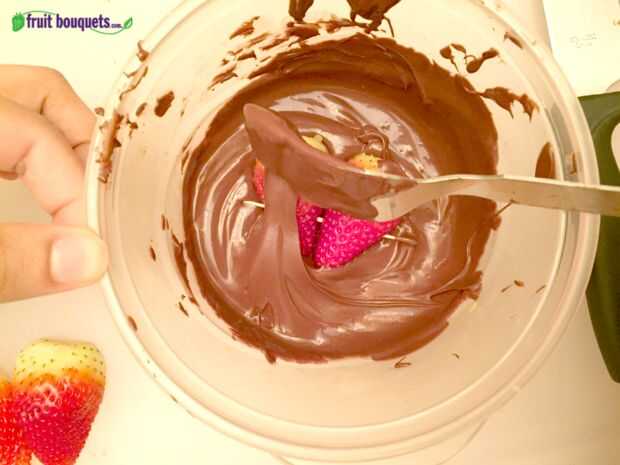 Como Ramos de flores y frutas hacer día de San Valentín de Chocolate cubierto de corazones de caramelo de fresa (8 / 9 paso)