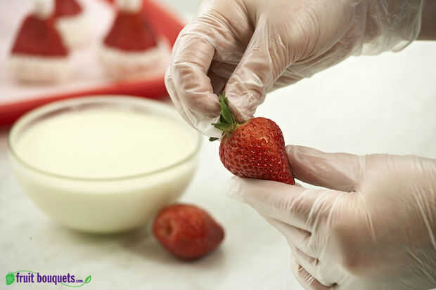 Como Ramos de flores y frutas hacer fresas de sombrero de Santa (1 / 5 paso)