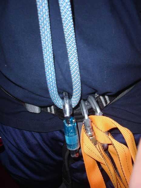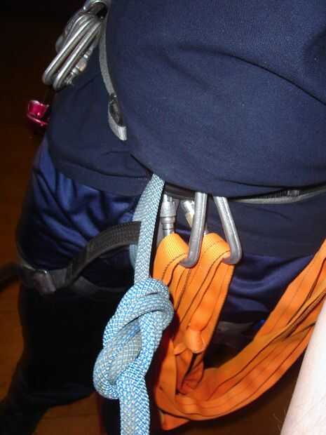 Puede ayudar a utilizar un mosquetón de seguridad a través de su entrepierna y aseguramiento lazo en vez de engancharte con una figura 8.