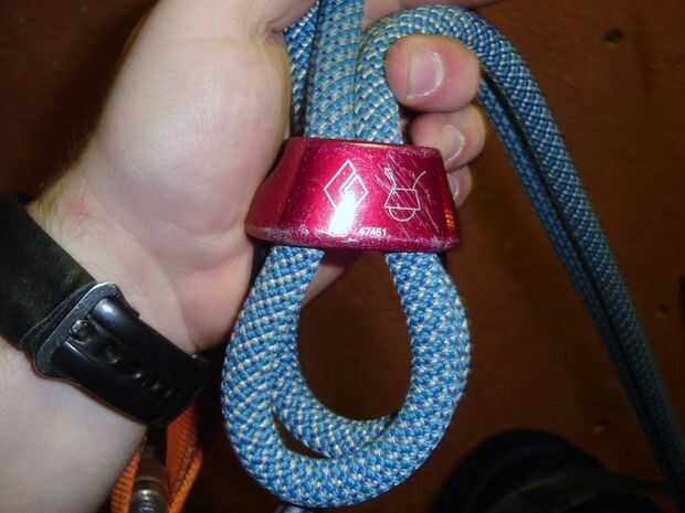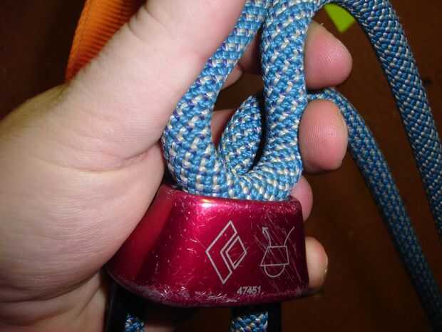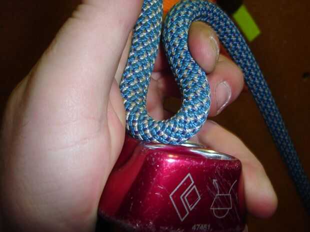 Sostienen el ATC para que un "agujero" es la más cercano a la pared y el otro es más cercano a usted. Si usted es diestro (o se utiliza para asegurar diestro), desea asegurarse de que la cuerda sobrante sale a la derecha una vez que se enganche la cuerda en el descensor. Inversa para los zurdos. Tienes que mover ambos extremos de la cuerda al lado de su cuerpo la cuerda sobrante será salir y asegúrese de que ambos están delante de usted y uno no está detrás de ti pegado en la cinta. Esto sucede con bastante frecuencia. Una vez que se han mudado a ambos extremos de la cuerda al lado quiere en exprimir el interior de la cuerda a través del orificio más cercano a la pared en el ATC. Después apriete la cuerda exterior a través del agujero que está más cercano en el ATC. Entonces debe tener un pequeño lazo de la cuerda en el ATC. Clip del mosquetón a través de ambos lazos de la cuerda y ya sea a través del cable con el ATC.