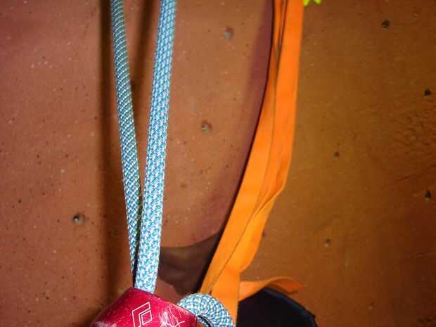 Ahora tendrá que probar su conexión a ATC para asegurarse que ti abrazarte.  Subir por la pared un pie o dos y tirar el juego a través de la ATC levantando la cuerda sobrante y.  Luego cierre presionando hacia abajo la cuerda que crea una rotura en el cable con el ATC.  Inclinarse hacia atrás sobre la cuerda para asegurarse de que el ATC te sostiene.  Debe haber holgura obvia en las correas, así que usted puede estar seguro es la cuerda y no las correas que le sujeta.  Si la cuerda se le sostiene, puede desenganchar las correas, manteniendo una mano rompiendo la cuerda en todo momento.  Nunca Tomar la mano de la rotura por cualquier razón!