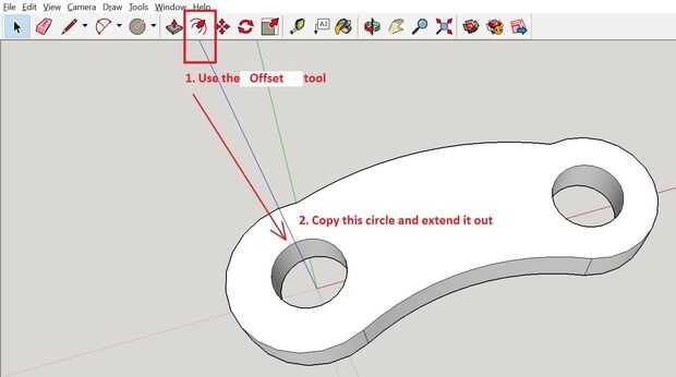 La herramienta Offset puede hacer una copia de la parte que seleccione y luego o bien hacer más grandes o más pequeños alrededor de la forma originalmente seleccionada.