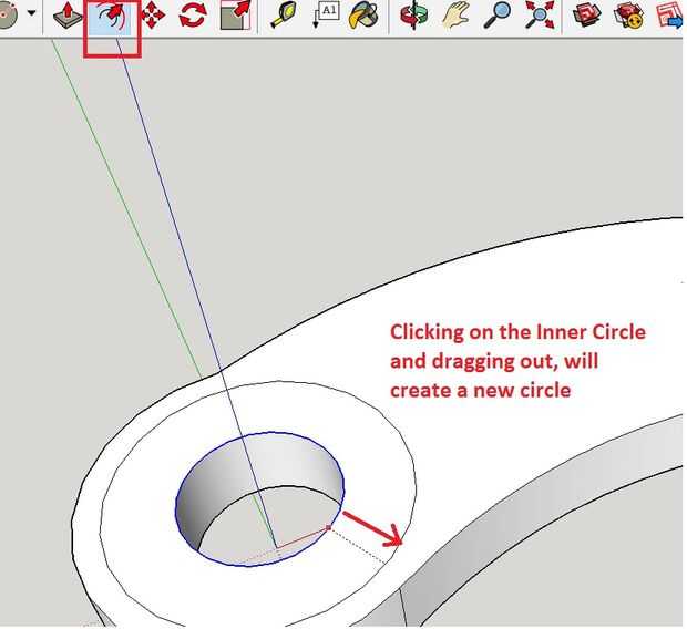 - A continuación, cambie a la herramienta Empujar/tirar y haga clic en el área por el recién creado círculo de "offset"