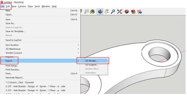 - En el menú Archivo, haga clic en Exportar > modelo 3D... opción de menú