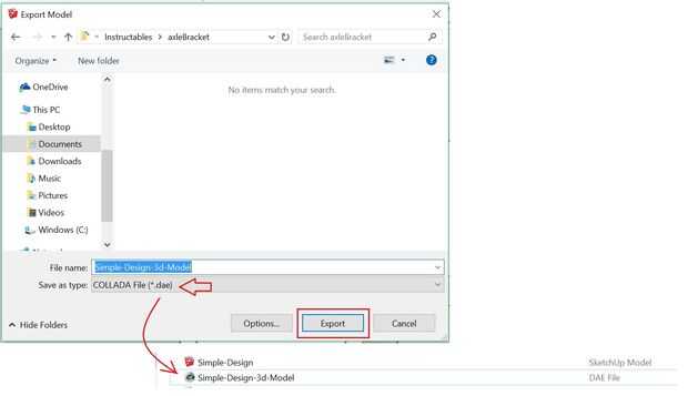 - El archivo se guardará como un archivo DAE con una extensión de DAE
