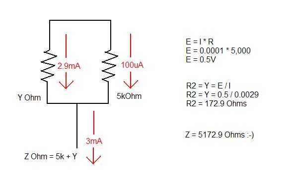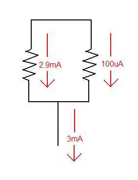 Medición de la corriente del ánodo tiene un poco más de matemáticas. Ningún cálculo, simplemente ley de ohm. Antes que nada calcular aunque, vamos a establecer algunas variables. El medidor es 100uA deflexión de escala completa, y nos gustaría hacerlo 3mA. Parece que necesitaremos una resistencia!