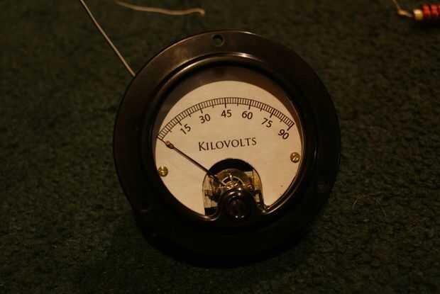 Podría recordar la resistencia de ohm 1,8 billones que coloqué dentro el aceite llena caja. Esa resistencia permitirá 50uA por cuando 90kV es colocado a través de él, así que colocando un medidor FSD 50uA en serie con ella creamos un 90, 000V metros. Todo lo que queda por hacer es hacer una escala!
