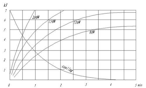 Afortunadamente, los fabricantes de equipos de rayos x y tubos de rayos x deben por ley federal [CFR título 21] proporcionar ánodo de calefacción y refrigeración curvas para sus equipos [imagen 1]. Es evidente que el funcionamiento de este tubo en una potencia de 225W limitaría el tiempo de exposición máxima a un poco menos de 1 minuto, con un período de enfriamiento de 5 minutos. Por supuesto exposiciones de rayos x nunca son realmente un minuto de longitud; generalmente son sólo unos pocos segundos a lo más.