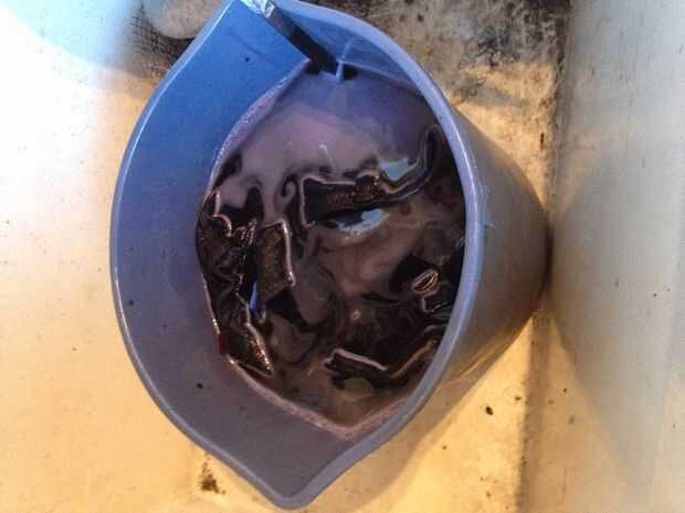 Antes de empezar, poner en los guantes! Si el tinte entra en su piel su acuerdo de no gran su un poco difícil de lavar. PERO es un dolor. Desea obtener el agua como caliente como sea posible antes de añadir a la cubeta. Cuando esté, añadir el colorante en polvo de 1 azul y 1/2 negro. Añadir suficiente agua caliente para el cubo. También querrás mojar tus jeans con agua caliente, así. Trate de asegurarse de que no hay ninguna manchas secas porque el tinte no afecta esa área bien. Añadir tu jean al cubo y asegúrese de que haya suficiente agua para que los pantalones vaqueros es de libre flotación. (Personalmente para mi cubo depende de la chica 2 marcos con los pantalones vaqueros en) "Reorganizar" el par durante los primero cinco o más minutos para que se obtiene uniformemente teñido. Dejar reposar 30 minutos.
