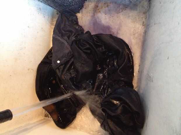 Generalmente lo enjuago porque llevo un montón de tes blancas y tengo un sofá blanco. Al enjuagarlo, use agua fría. Agua caliente se enjuague demasiado. Sólo aclararla apagado hasta que el agua es bastante clara. No necesita ser exactamente claro. Séquela con un método de su elección. Acabo de poner mis pantalones vaqueros en la lavadora y ponerlo a girar para sacar exceso de agua y pegarlo luego en la secadora en la posición más baja.