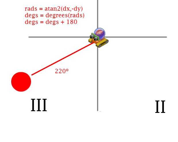Si el objetivo fuera que se encuentra en el cuadrante III, iría algo como esto.