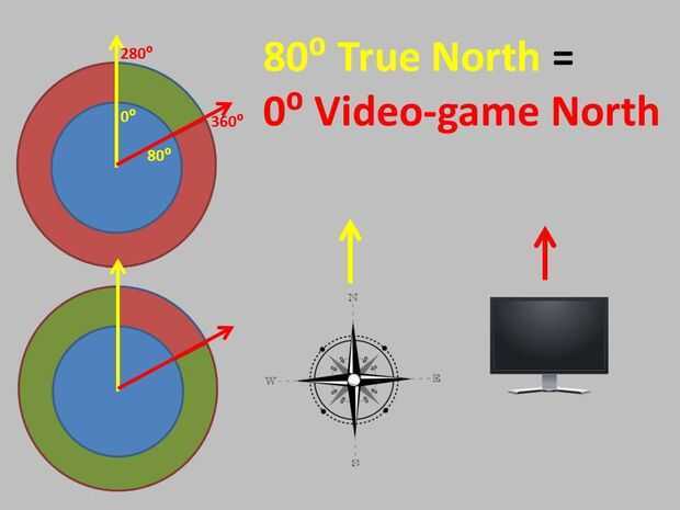 No.  En su lugar, quiero centrarme en el ajuste de la brújula de un valor correspondiente al verdadero norte, a lo que queremos pensar es hacia el norte, en nuestro caso, lo que es la parte superior de nuestra pantalla.  Este proceso tiene una pequeña participación, puesto que los números se deben establecer manualmente y con guesstimation un poco.