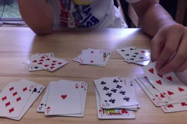 Si te quedas sin cartas por cuando llegues a este paso, coge un montón de los cinco pila le colocó previamente (las pilas que no importan) y contando con ellos en la cabeza como te los pones.