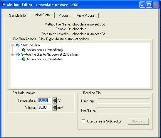 Para poder realizar correctamente un análisis DSC de su polímero, una calefacción y refrigeración ciclo que incluye la temperatura de transición vítrea (Tg) de su polímero deben crear en Pyris. Es mejor establecer el valor inicial a una temperatura muy por debajo de este calor a un valor por encima de la Tg pertinentes y Tg. Por ejemplo, el polimetacrilato (PMMA) tiene una Tg alrededor de 105 grados Celsius. Para DSC de este polímero, fijamos la temperatura inicial a 30 centígrados y el calor a 185 grados Celsius para asegurarse de que nos pase su Tg. Para comenzar a configurar el ciclo, ingrese la temperatura inicial en la sección denominada "Establecer valores iniciales" en la pestaña de "Estado inicial".