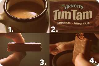 5. paso chupar en el Tim Tam como una paja. Milo fluirá a través de él.