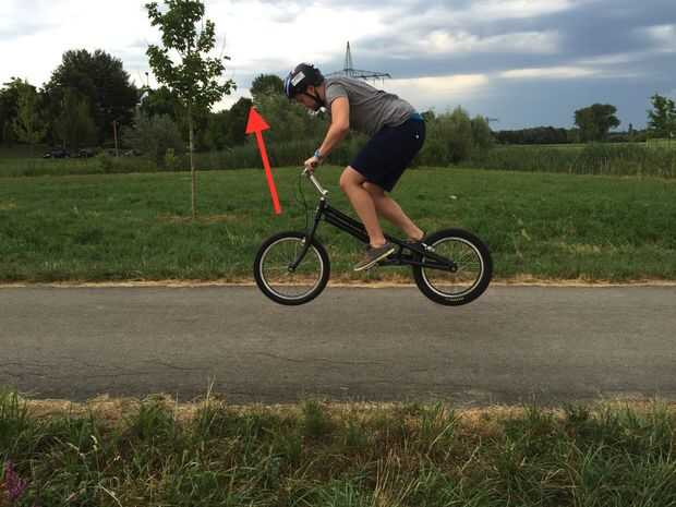 El salto en sí mismo es un poco complicado. Tienes que conseguir dos de sus ruedas en el son al mismo tiempo. Para conseguir esto, usted tiene que empujar el manillar un poco lejos de usted mientras que usted empuja en el aire. A continuación, saltar en el mismo momento.
