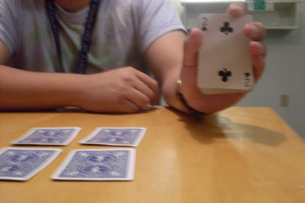 Mostrarles la cara primera tarjeta, el dos de espadas en este caso y preguntar "¿es esta tu tarjeta?" para una última vez. Hacer un alboroto enorme sobre él y hacer creer que usted cree que su tarjeta es realmente el dos de espadas a la adivina.