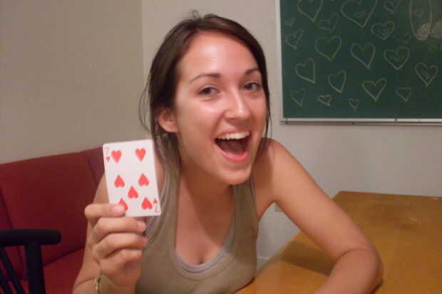 Ley super sorprendido que usted conjeturaba seis veces y cada uno supongo que estaba equivocado y empezar a los bancos las tarjetas más de uno por uno hasta llegar a la última de ellas. Mientras tanto, siguen preguntando si cada tarjeta es tarjeta de turno. Siguen preguntando si está seguros de aumentar el efecto del truco. Una vez en la última carta, que usted conoce es el siete de corazones, le pregunto de nuevo, "¿es esta tu tarjeta?" Deben ser sorprendidos que tenes la tarjeta derecha!