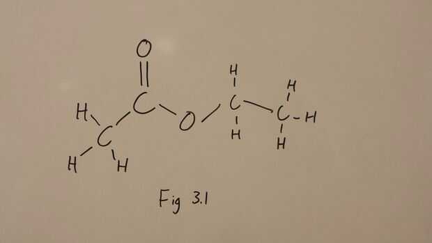 Un ejemplo de dos productos químicos sería (Fig. 3.1) de acetato de etilo y hexano (Fig. 3.2). Acetato de etilo es muy polar, puesto que la molécula no es simétrica y tiene oxígeno sólo en un lado... Hexano es una molécula muy simétrica y carga tan eléctrica se distribuye uniformemente.
