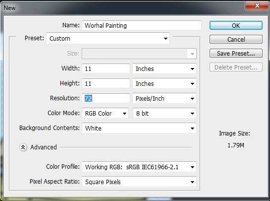 Lo que usted querrá hacer es hacer un nuevo lienzo. Hice uno que es 11 x 11. Si desea más grande, recomiendo números impares tales como 15 x 15, 21 x 21, y así sucesivamente así que usted puede conseguir un espacio. Si no desea que cualquier espacio que hacer números para que pueda obtener en el medio.