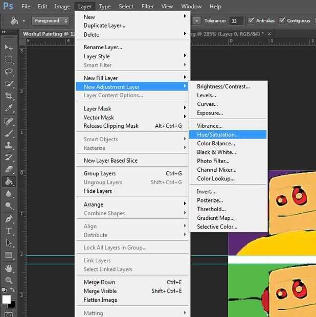 Tiempo ahora para esas caras muy poco de color! Seleccione uno de los rostros en tus pestañas de capa, de ir a capa > nueva capa de ajuste > Tono/saturación. Haga clic en él que cheque la casilla que dice "Uso anterior capa para crear una máscara de recorte." Una vez que haces eso, elegir el tono y la saturación deseada para la cara. Hacer esto para todas las caras.