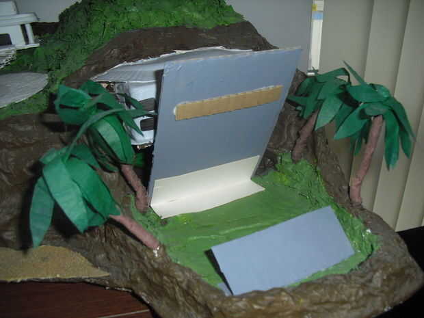 Decidí hacer la pista mejor que Anthea Turner mitad corazón intento y decidió hacer realmente mía elevar hacia arriba y hacia abajo. Os adjunto un poco de bisagras tarjeta hasta el final de la pista que estaba más cercano a la entrada de la suspensión y pegadas hacia abajo en la base. Entonces conseguí una tira delgada de cartón que se pegó a la parte inferior de la pista de cuarto de camino hacia abajo desde el otro extremo. Para acabar hice otra pieza con bisagras de tarjeta y pegado la bisagra estaba apuntando lejos del resto de la isla y la aleta se coge en la tira de cartón (fotografiado arriba).