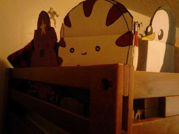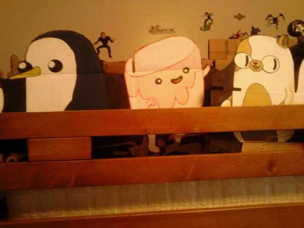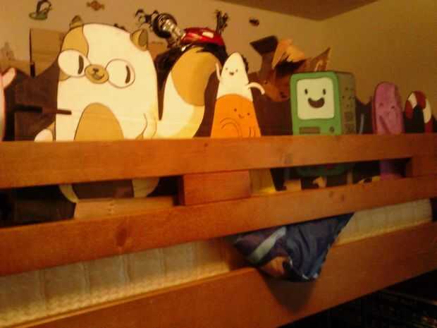 Los personajes, me enteré, son perfectos para utilizar como altura adicional de la barandilla del lado de la litera de arriba de mis hijos! Simplemente deslícelos derecha que entre el raiing y la cama y usted puede con cinta adhesiva en su lugar si quiere.
