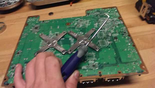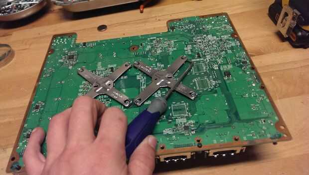 3. una vez que se quitan las 2 abrazaderas de x voltee la placa y quitar los disipadores de calor 2
