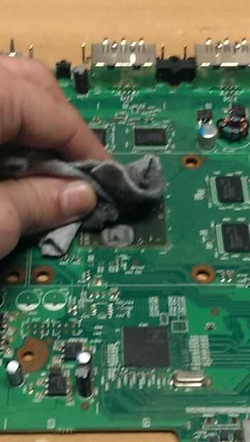 3. después de tus fichas están limpias utilice el 99% de alcohol para terminar de limpiar tu chip que no quiere goof apagado en su tabla mientras la calefacción para arriba