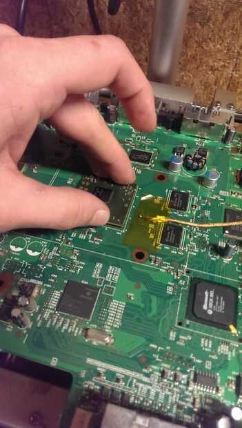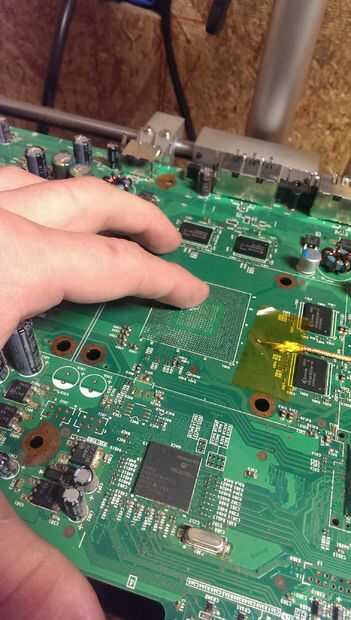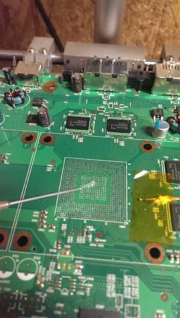 3. Alinee su chip a la Junta debe haber un lado del chip que tiene una bola de la soldadura adicional para ayudarle a alinear su chip más fichas tienen alguna manera de que te deja saber cómo se sienta ps3s tienen un triángulo de falta bolas de la soldadura