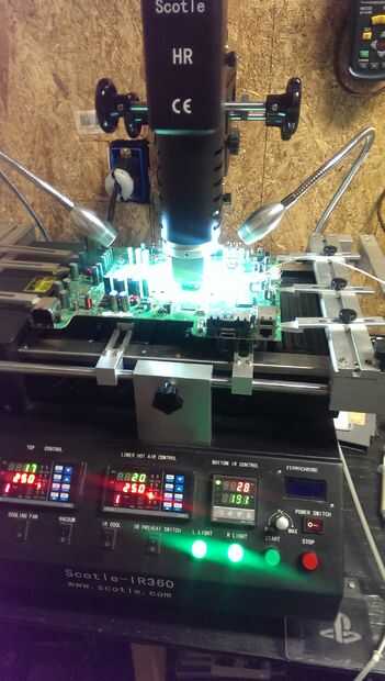 4. ahora todo lo que tienes que hacer es ejecutar su perfil y prestar atención a su termómetro y la temperatura debe ser baja para colocarle el chip nuevo ya que estamos utilizando con plomo soldadura para volver a colocar el chip para mi perfil y mi termómetro es alrededor de 205-208, por lo que cuando llegas a que temperatura hará el empujón probar otra vez y me gusta dar otro 5 segundos para hacer que cada bola correctamente attatches
